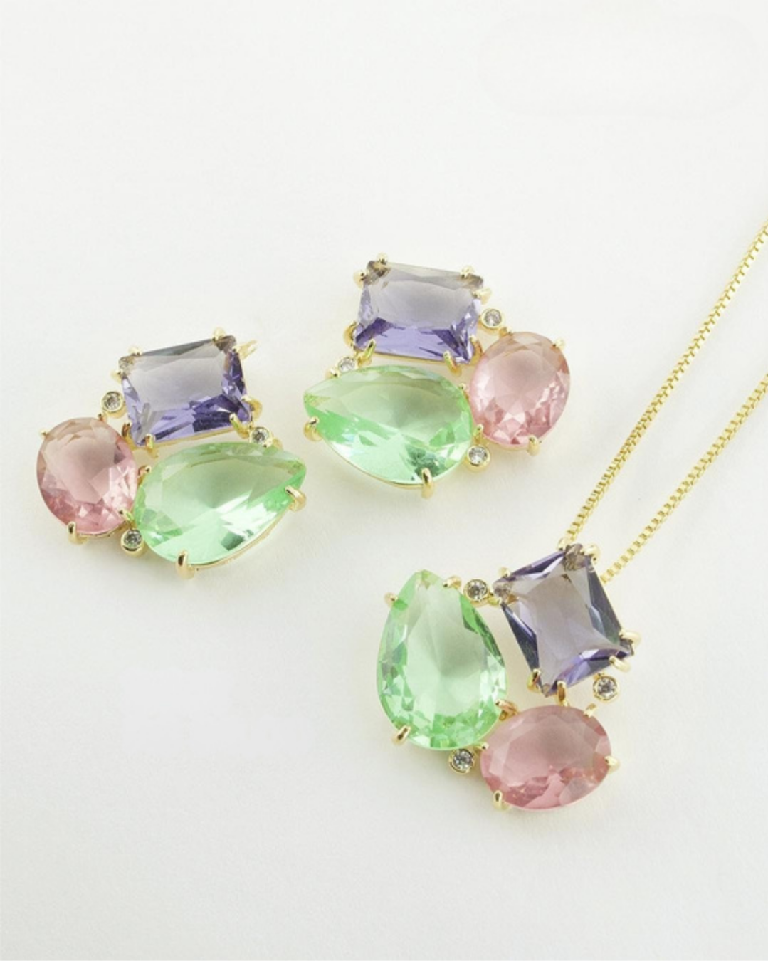 Pedra: Zirconia azul, Zirconia branca, Zirconia Lilás, Ametista, Quartzo Rosa, Quartzo Verde e Topázio