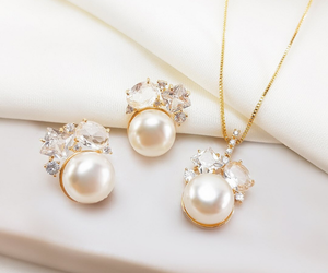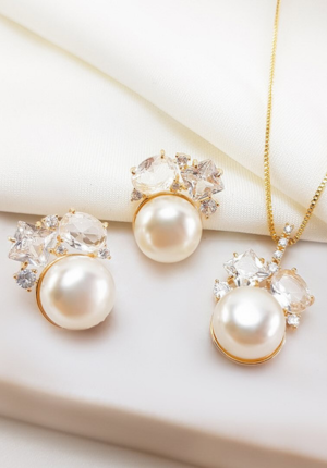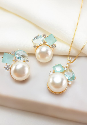 - Conjunto Marina em Prata 925 com Banho de Ouro Amarelo 18k, com Perólas e zircônia branca.